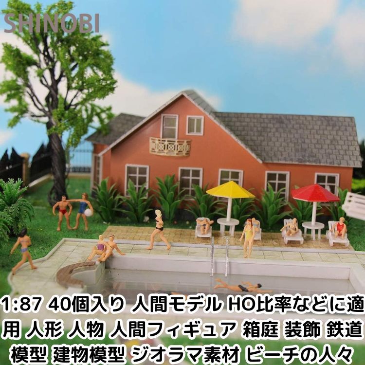 - 1:87 40個入り 人間モデル HO比率などに適用 人形 人物 人間フィギュア 箱庭 装飾 鉄道模型 建物模型 ジオラマ素材 ビーチの人々