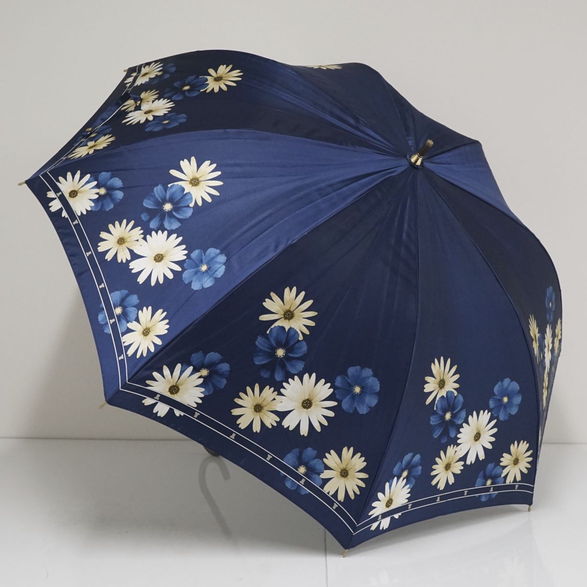 > 傘 LANVIN COLLECTION ランバンコレクション USED美品 ロゴモチーフ ネイビー グラス骨 レザー手元 60cm S2152