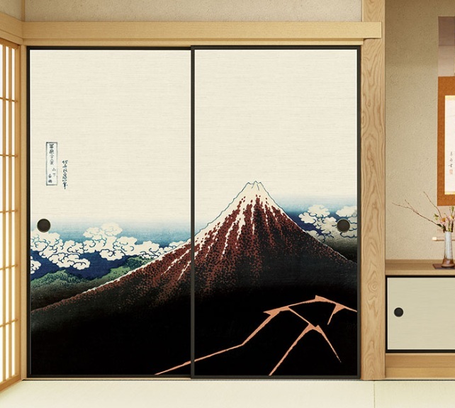 - 【TI山室家具】★葛飾北斎 冨嶽三十六景シリーズ 左右2枚組襖紙!「山下白雨」(新品受注生産品)