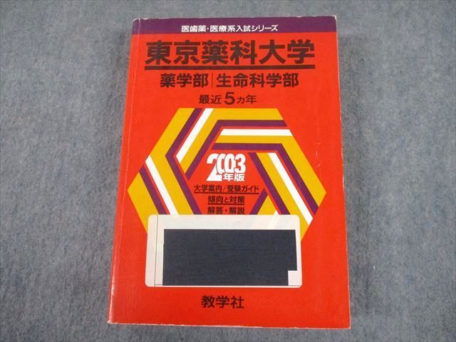 > 教学社 2003年版 東京薬科大学 薬学部 生命科学部 最近5ヵ年 問題と対策 医歯薬・医療系入試シリーズ 赤本 039S1B
