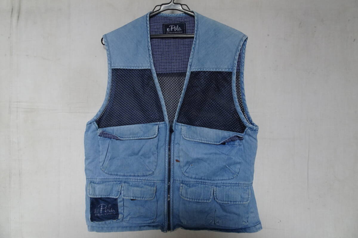 - LE POLO ADEAUVILLE/アウトドアベスト/デニム風素材/メッシュ素材切替/Vネック/前ジップアップ/インディゴブルー/青/Lサイズ(3/19R7)