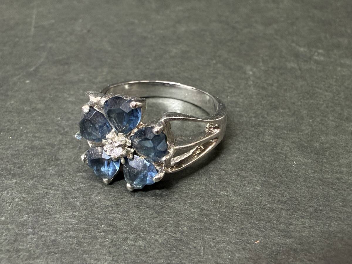 - ★コレクター必見 ラインストーン シルバーカラー リング ブルー 花 フラワーモチーフ 指輪 レディース アクセサリー コレクション Go950
