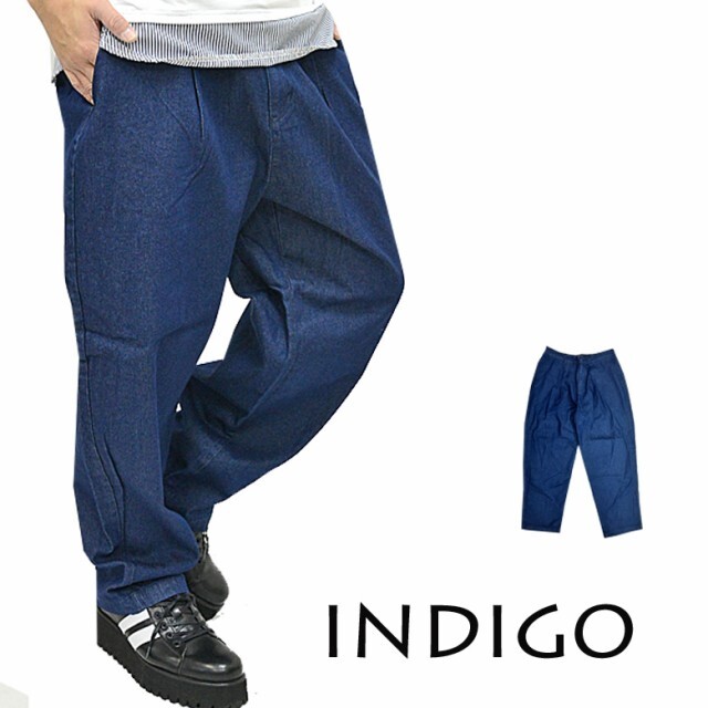 - ワイドデニムパンツ メンズ メンズ パンツ テーパードイージーパンツ 2152n213 新品インディゴ L