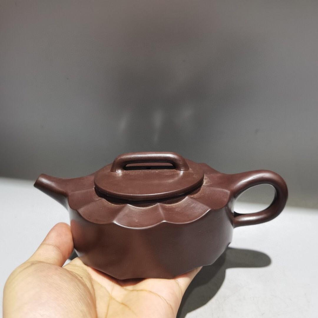 - 『館蔵珍品 紫砂壺 筋紋周盤壺 時大彬款 紫泥 紫砂壺』置物 賞物 貴重物品 収蔵品 中国古美術
