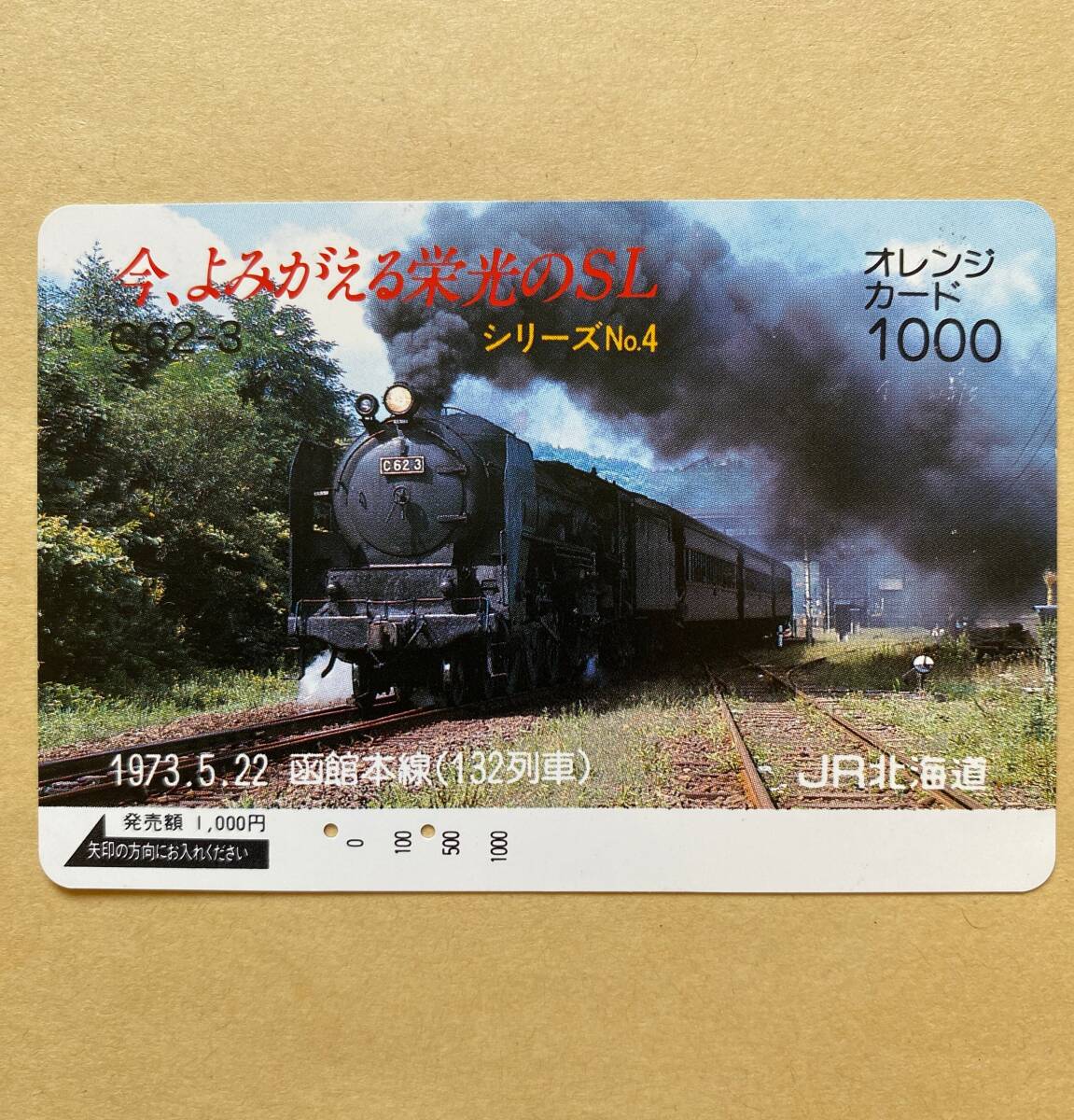 - 【使用済】 オレンジカード JR北海道 SL 今、よみがえる栄光のSL シリーズ№4 C62-3 1973.5.22 函館本線(132列車)
