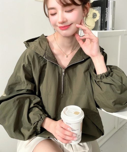 > 新品・未使用♪ moment+≪モーメントプラス≫ナイロンアノラックパーカー♪サイズM♪カーキー♪