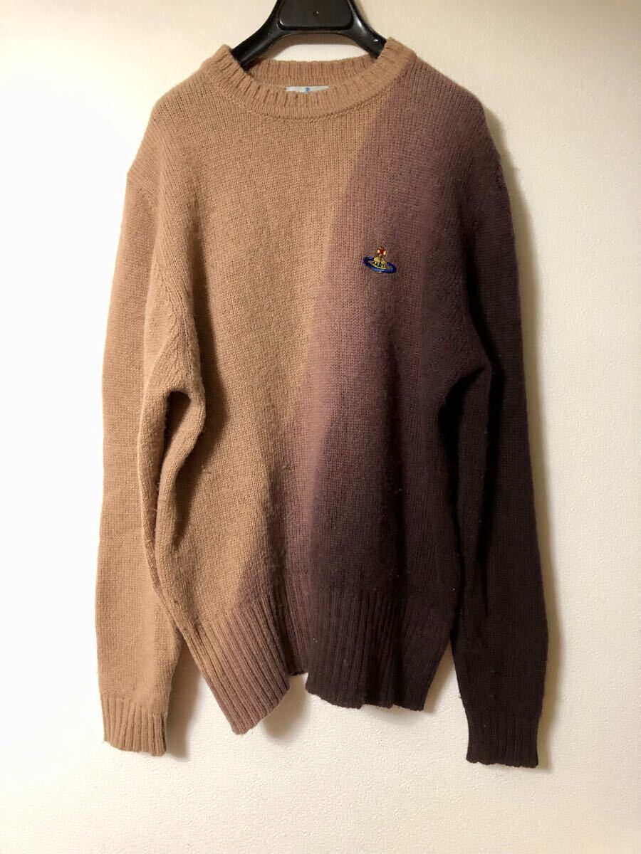 - Vivienne Westwood MAN オールド 98AW イタリア製 バイアスグラデーション ニット オーブ刺繍 キャメル〜ブラウン系 London ウール vintage