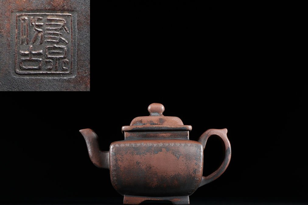 - ▼渡鶴羽▼R3081時代朱泥 四方紫砂壺 在銘 友泉倣古 徐友泉 明代 /紫砂 煎茶道具 朱泥 茶壺