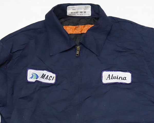 > CJ59ワークジャケットUNKNOWNアメリカ古着コットンジャケット90’Sビンテージ紺系トラックジャケットMパッチ付きユニホーム中綿入オールド
