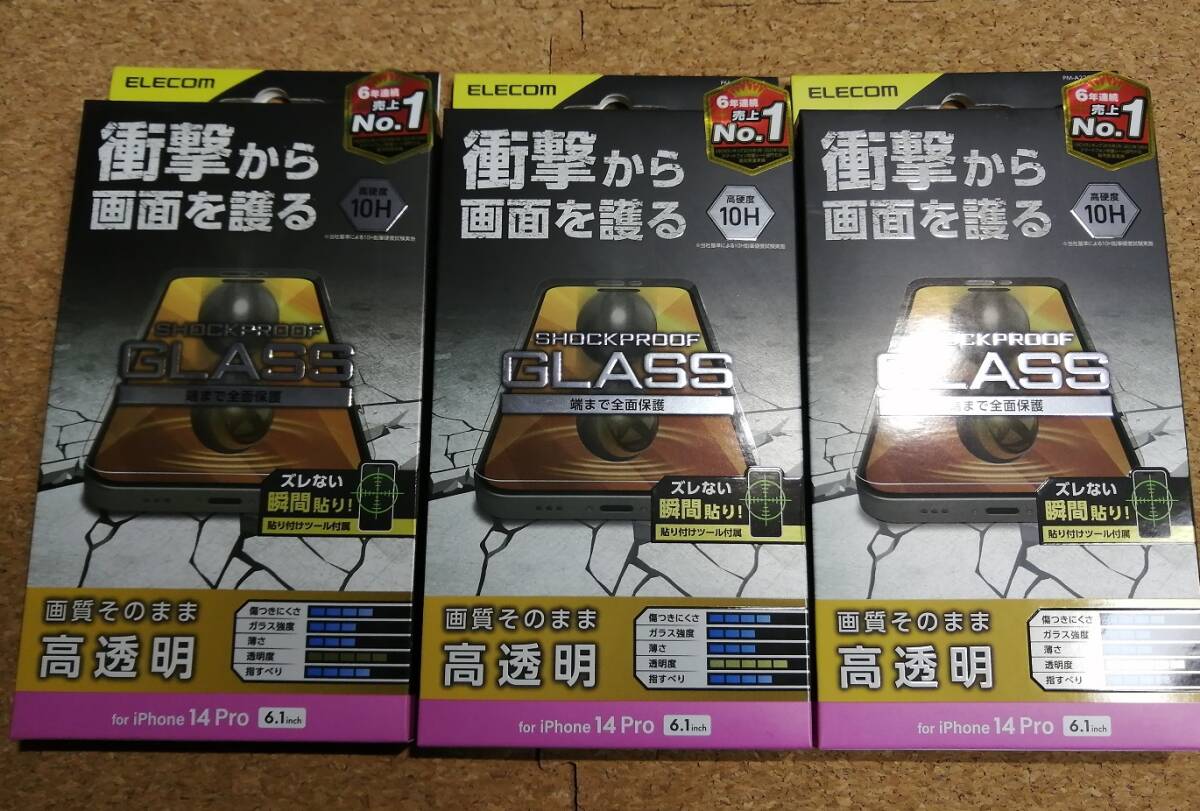 - 【3枚】エレコム iPhone14 Pro ガラスフィルム 高透明 衝撃吸収 強化ガラス 表面硬度10H PM-A22CFLGZ 4549550263504