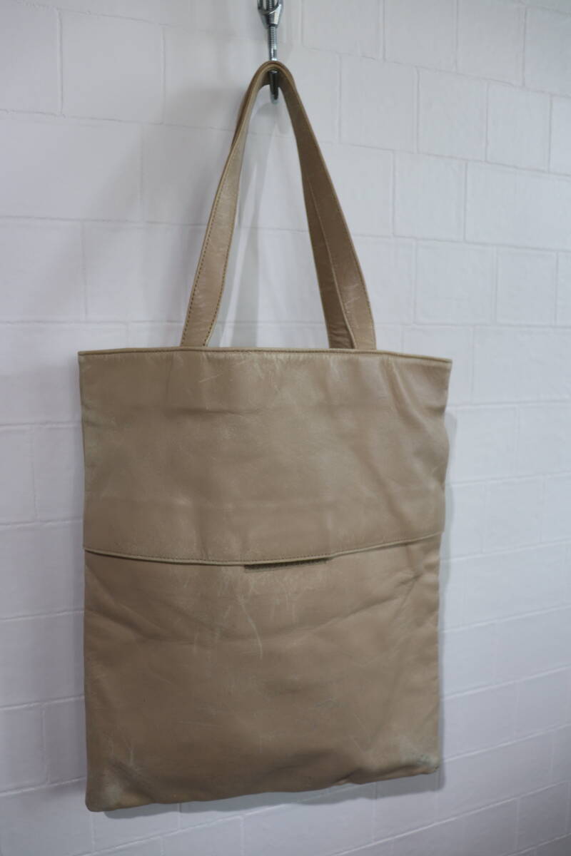 > 即決 2000年代初頭 HELMUT LANG ヘルムートラング 本人期 縦長 前面ポケット レザートートバッグ オールレザーバッグ ベージュ