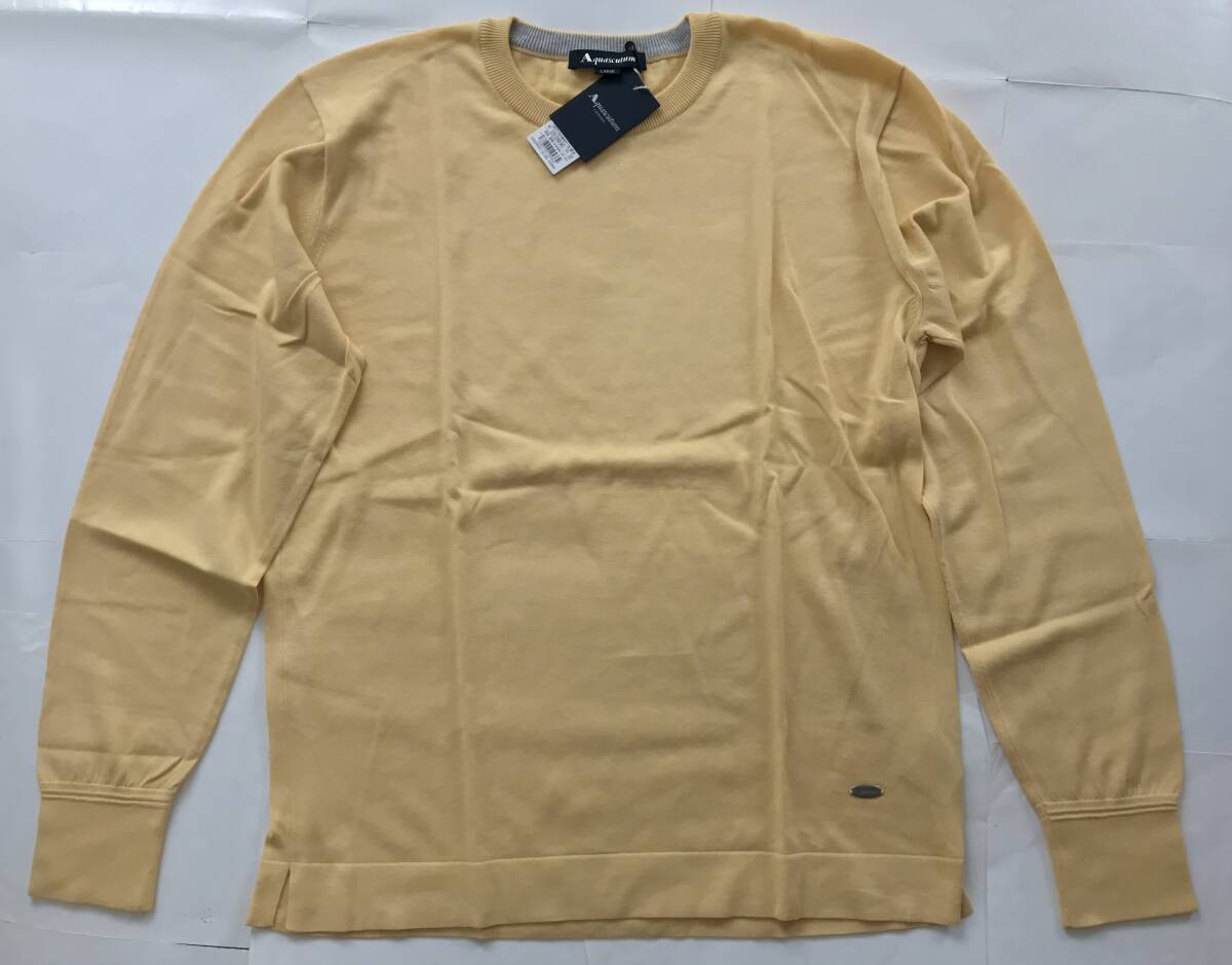 - 新品30,800円★日本製 イタリア糸★最高級エジプト綿100%★アクアスキュータム★18Gコットン クルーネックニット★クリームイエロー★sizeL