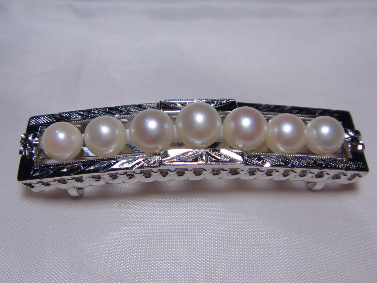 - アコヤ真珠 本真珠 帯留め 約6.2~7㎜ 山型一列 STERLING刻印 ツヤテリ良 ヴィンテージ 和装小物 Y525
