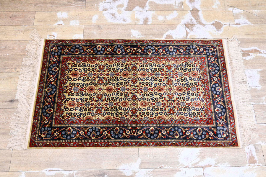> HA053 美品 ハンドメイド 手織り シルク 絹100% ペルシャ絨毯 186x92cm(房含む) 玄関キッチンマット センターラグ カーペット 廊下