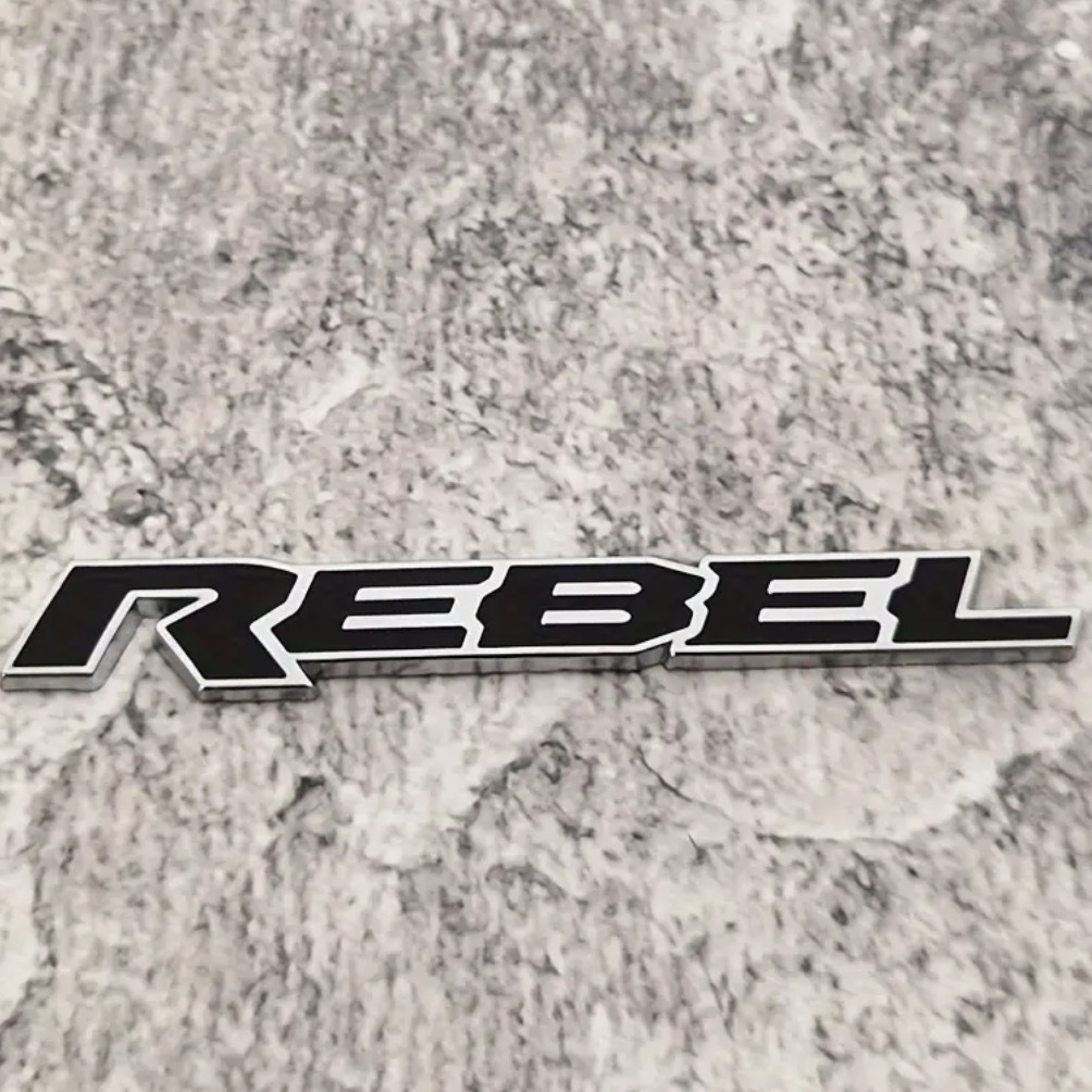 - エンブレム おしゃれ 金属 REBEL リベル メタルステッカー 立体 ブラック シルバー 12.8cm 車用 ロゴ 簡単貼り付け 外装 シール t5525a