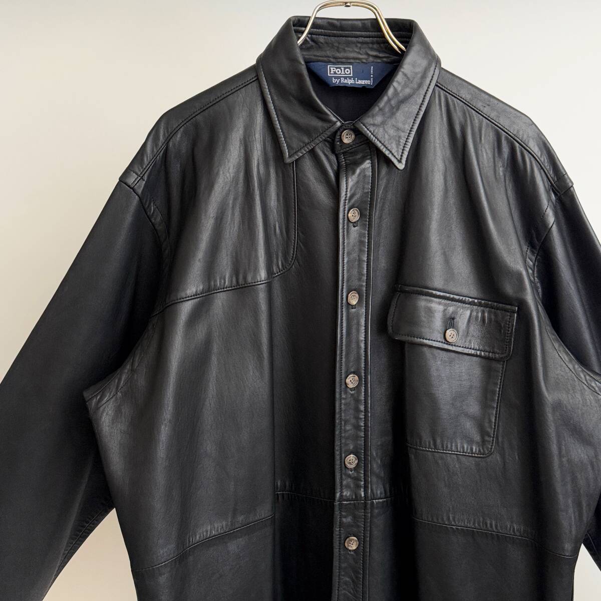 - 希少《Mint Condition / Lamb 》80s 90s 美品 【 Ralph Lauren ラムレザー 黒 ブラック ハンティング シャツ L ビンテージ サンプル 】