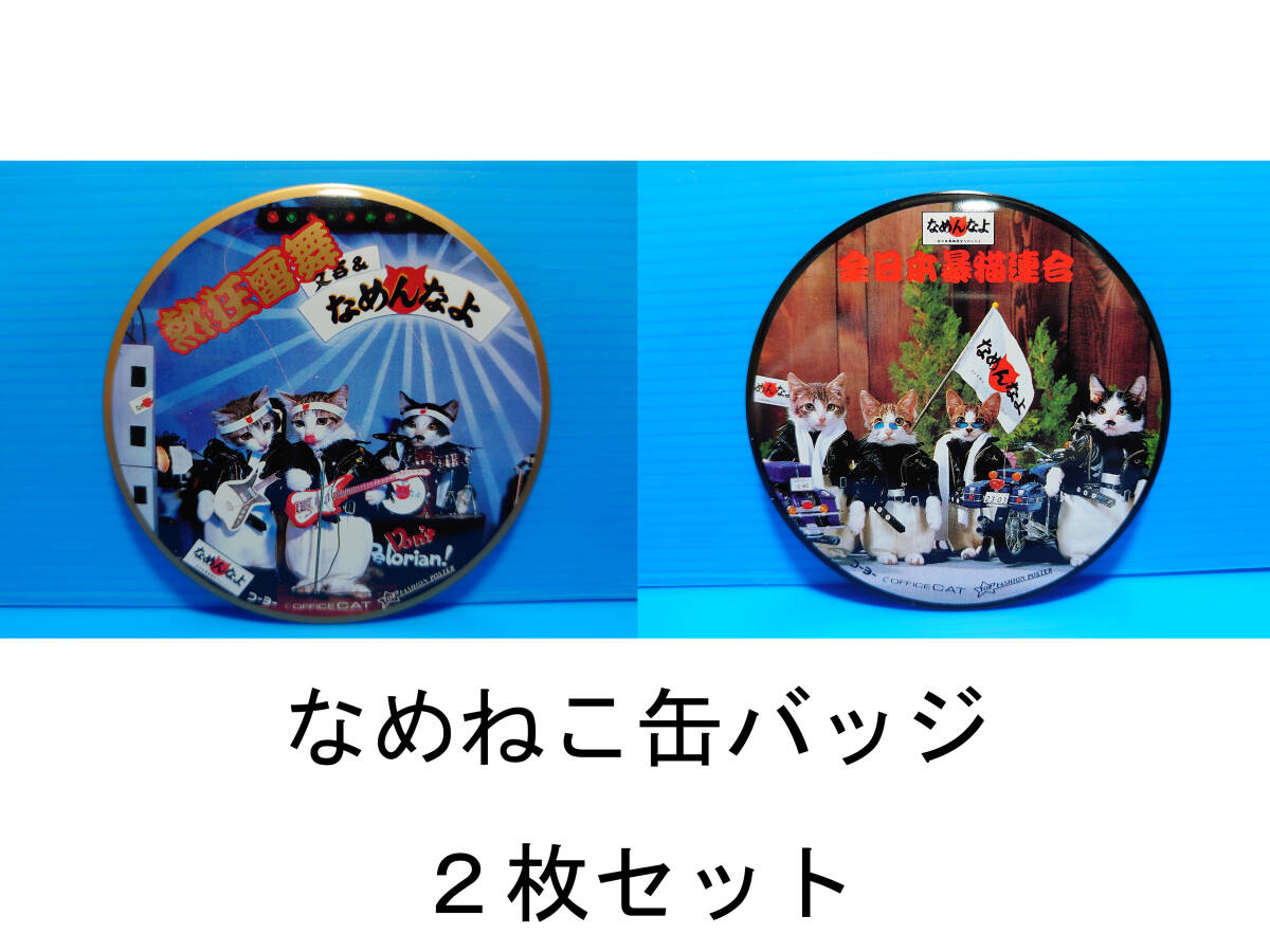 - なめんなよ なめ猫 缶バッジ なめねこ 昭和 カンバッジ 熱狂雷舞 全日本暴猫連合 2枚セット 09 10