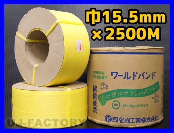 - ★自動梱包機用/PPバンド★幅15.5mm×2500m 黄 ×2巻セット