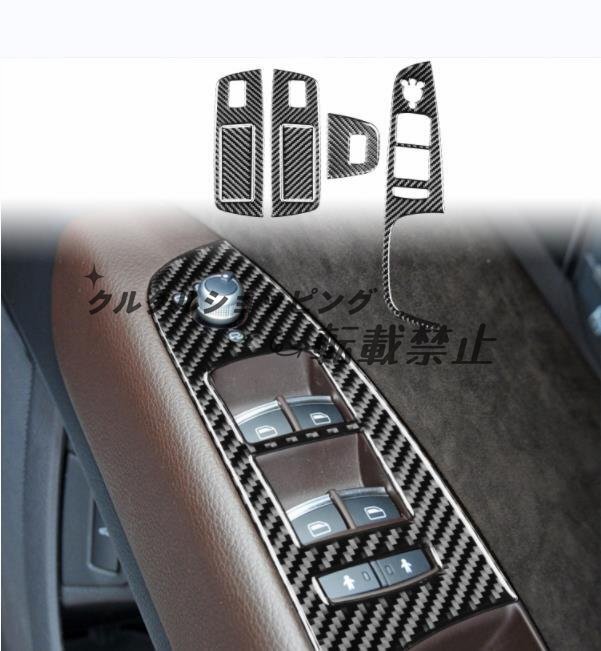 > アウディ Q7 4L 2008-2015年 右ハンドル用 ドアウィンドウ スイッチ ボタンフレーム ステッカー パネル カバー カーボン柄