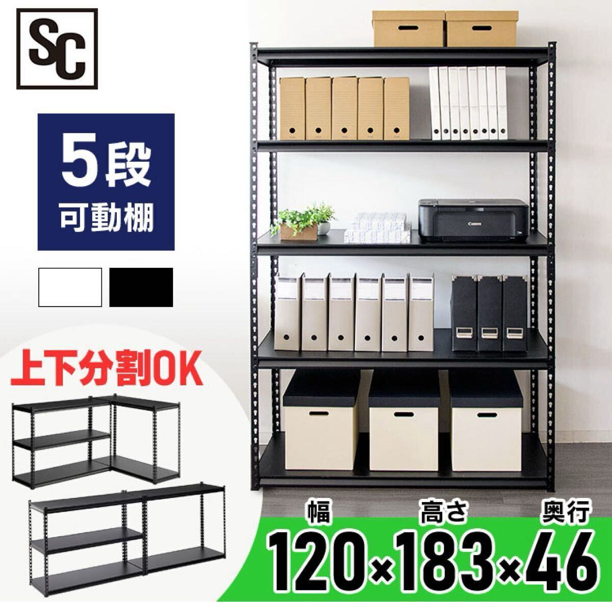 - スチールラック メタルラック 飾り棚 収納棚 収納ラック 横幅120cm 5段 スチール棚 ブラック シェルフ
