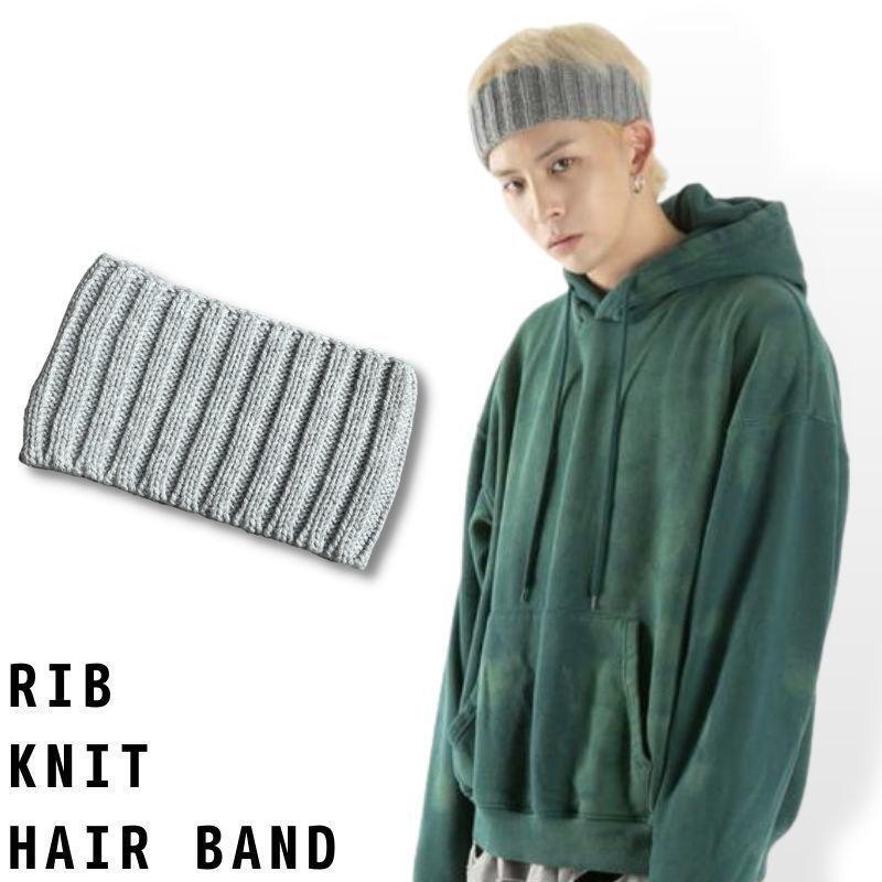 - 太リブ ニット ヘアバンド ターバン 幅広 ワイド 灰 グレー ヘッドアクセサリー ストリート リブニット 韓流 男女兼用 メンズ レディース