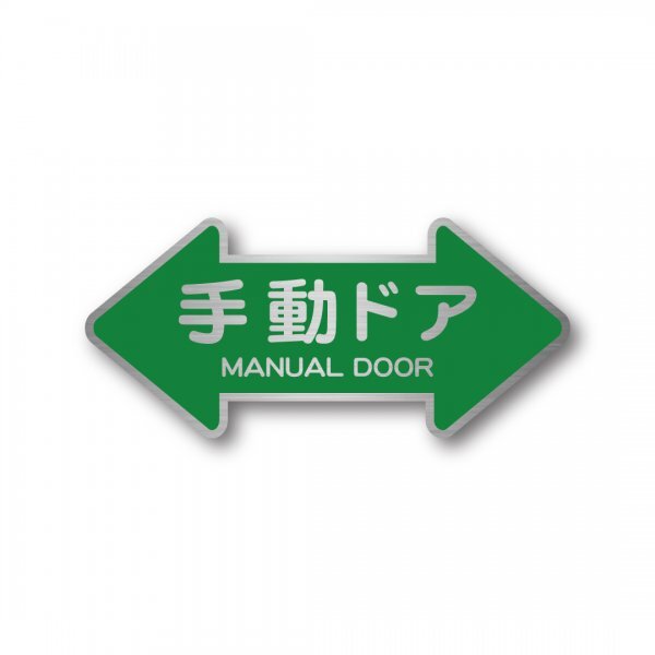 > 手動ドア 引き戸 ステッカー 矢印形 グリーン ヘアライン 新品 マット ラミネート 110mmx50mm 案内 防水 耐熱 シール 国内生産 日本製