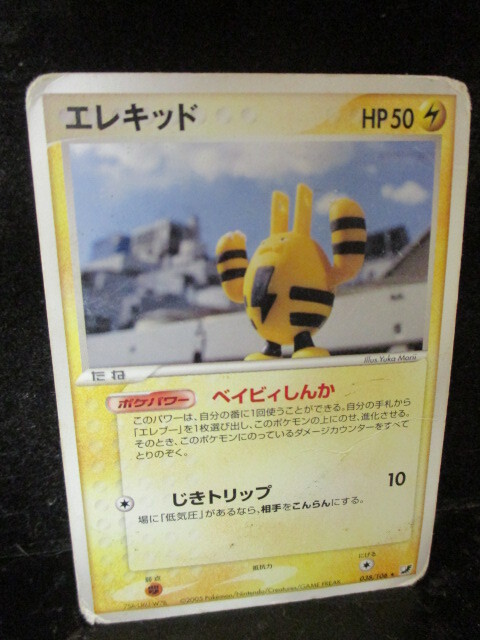 エレキッドたね038/1062005年スレ・折れアリ※コレクター商品ではなく子供が遊んでいた物なのでカードのレア度 状態等は写真にてのご判断でよろしくお願いいたします。※※あくまでも個人の見立てですので、ご理解願います。※