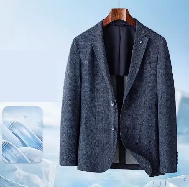- 高品質XL/ブルー 新品 メンズ 涼感 アイスシルク テーラードジャケット 着心地良い ノーアイロン 快適 夏 細身 ビジネス ブレザー