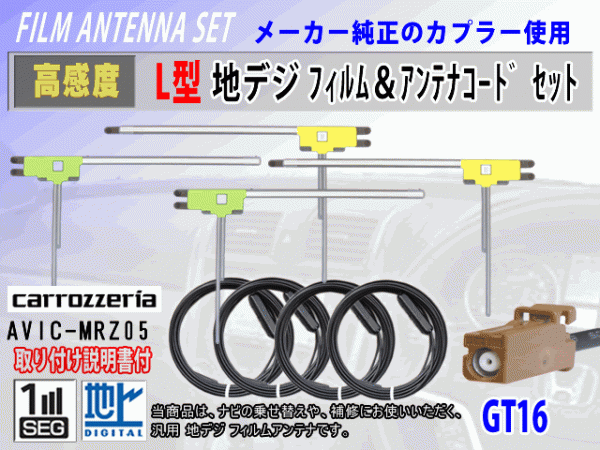> 高感度 GT16 カロッツェリア AVIC-VH9990 地デジ L型 フィルムアンテナ左右4枚 アンテナコード4本 載せ替え 汎用 高品質 フルセグ RG8