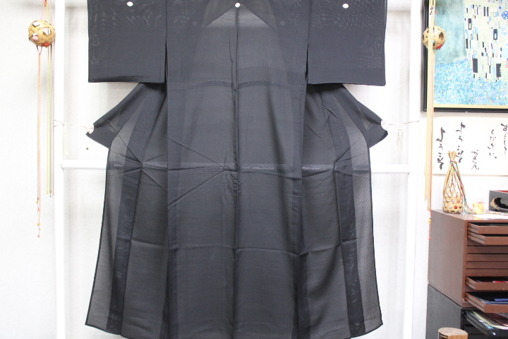> きもの今昔8354 黒の礼装 夏用絽の喪服 広衿単衣仕立きもの 家紋「剣花菱」 小柄な方用身丈149cm