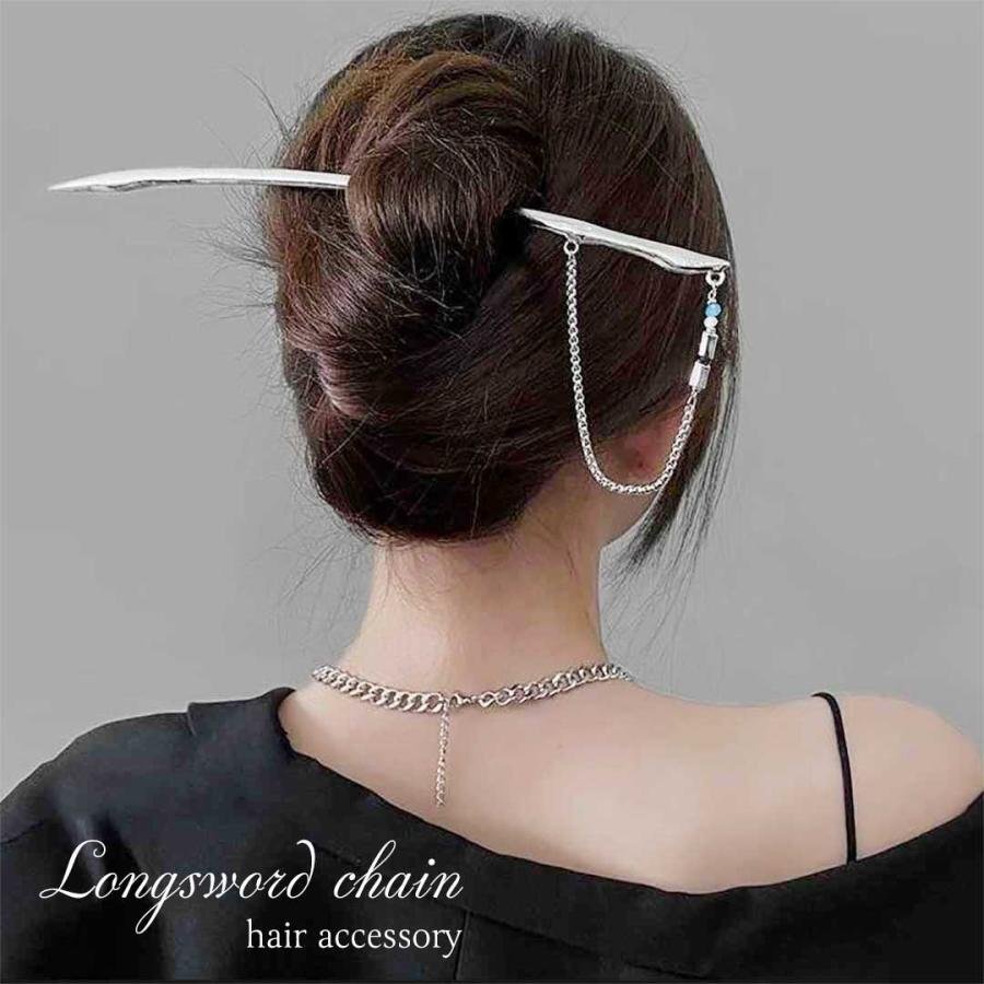 - 髪留め ロングソードチェーン ヘアアクセサリー 剣 かんざし ヘアアレンジ ヘアスタイル 和装 パーティー 結婚式 巻き髪 お団子 上品