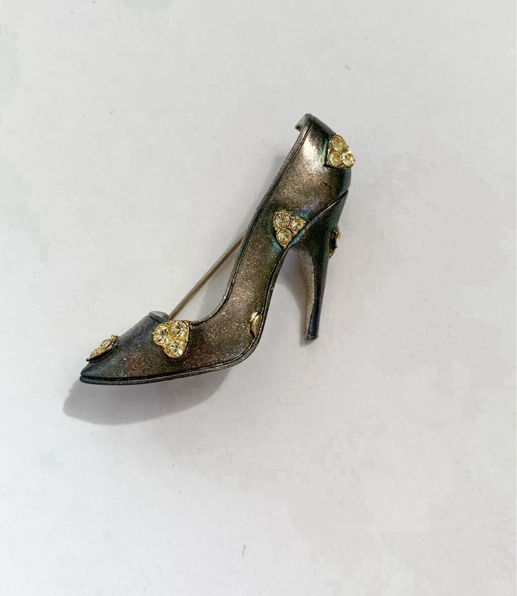 - 【美品】フランス購入 ヴィンテージ メトロポリタン ミュージアム パンプス ブローチ MMA刻印有 靴 ヒール ミニチュア ハート柄 レトロ
