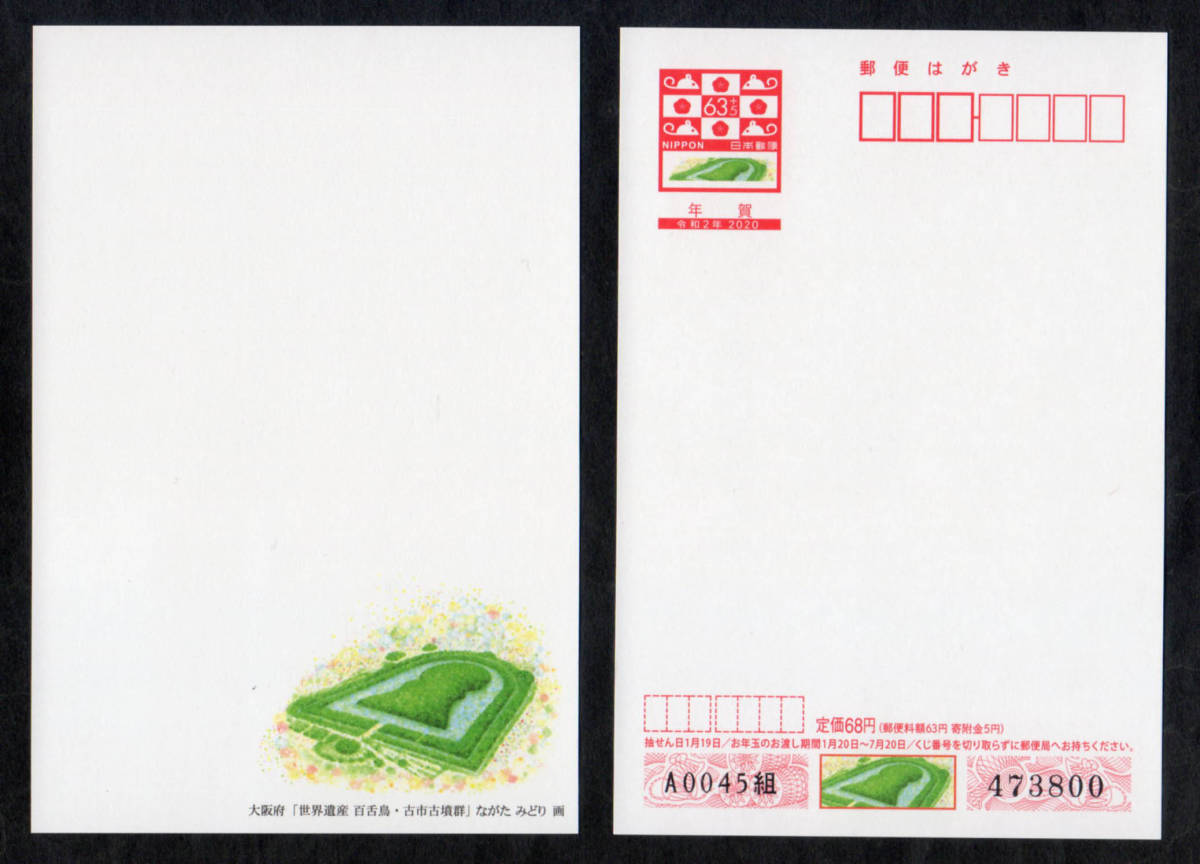 18167B6◆複数出品◆2020年用 百舌鳥 古市古墳群63円★絵入り年賀はがき 世界遺産 大阪府 令和2年用