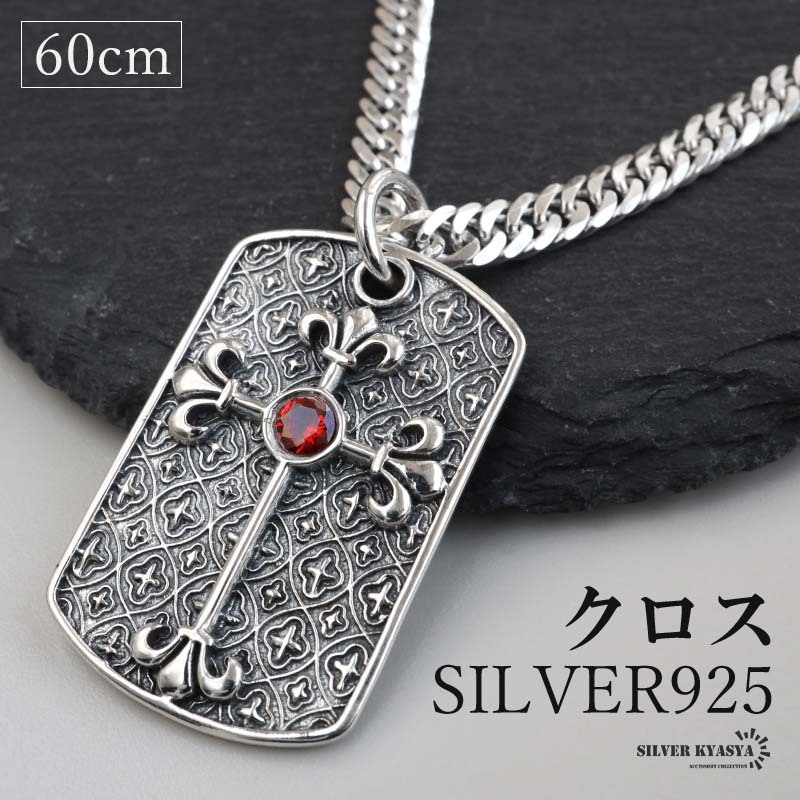 - シルバー925 ドッグタグネックレス クロスネックレス ダブル喜平 6面カット 60cm シルバー 燻し メンズ 金アレ対応