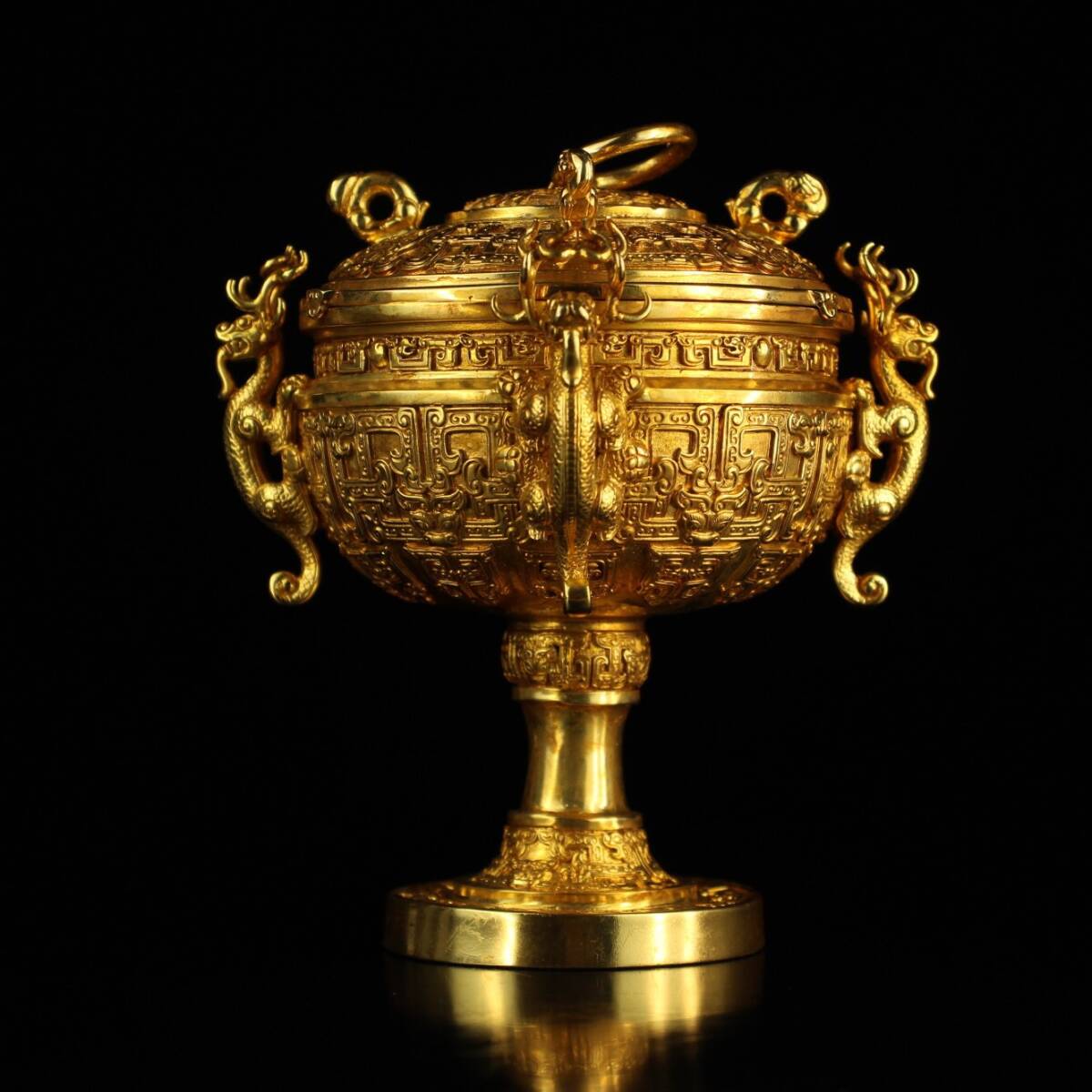 - ▽鴻▽ 銅製 塗金 盤龍熏香炉 置物 古賞物 中国古玩 中国古美術