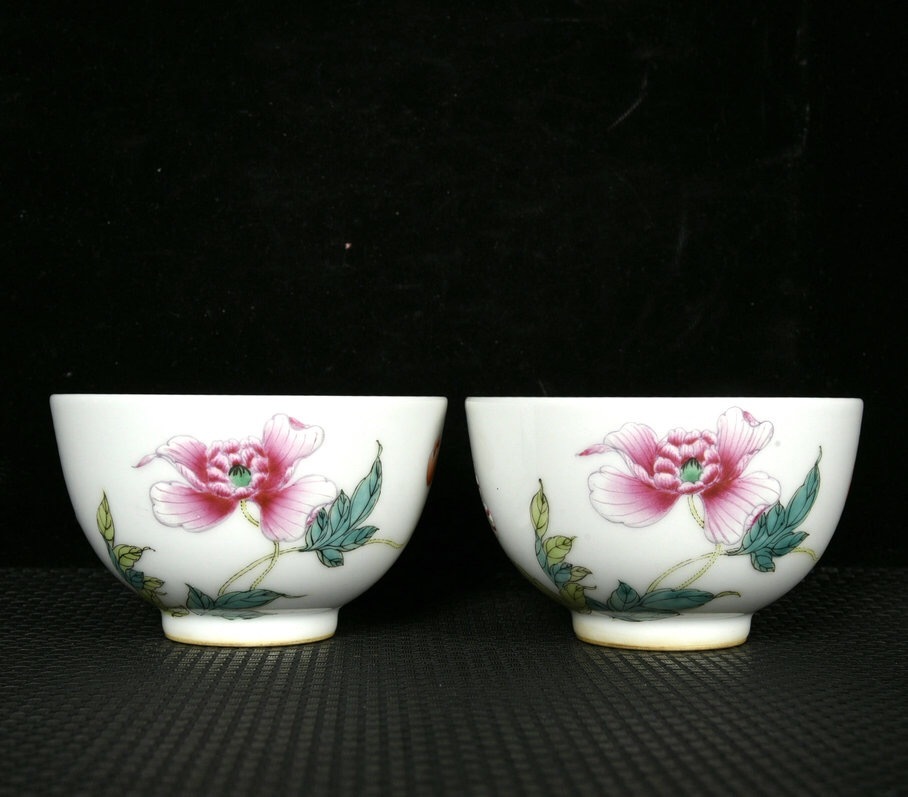 - ▽鴻▽ 清 雍正年製款 粉彩 虞美人花卉紋 供碗一對 古陶瓷品 置物 古賞物 中国古玩 中国古美術