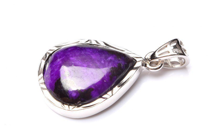- 高発色 スギライト(杉石)のドロップ 型シルバーネックレス