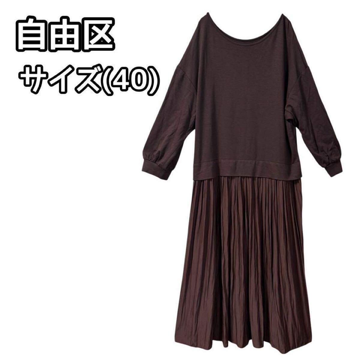 - 自由区 ワンピース ロングワンピース ブラウン 40 春秋 大きめサイズ