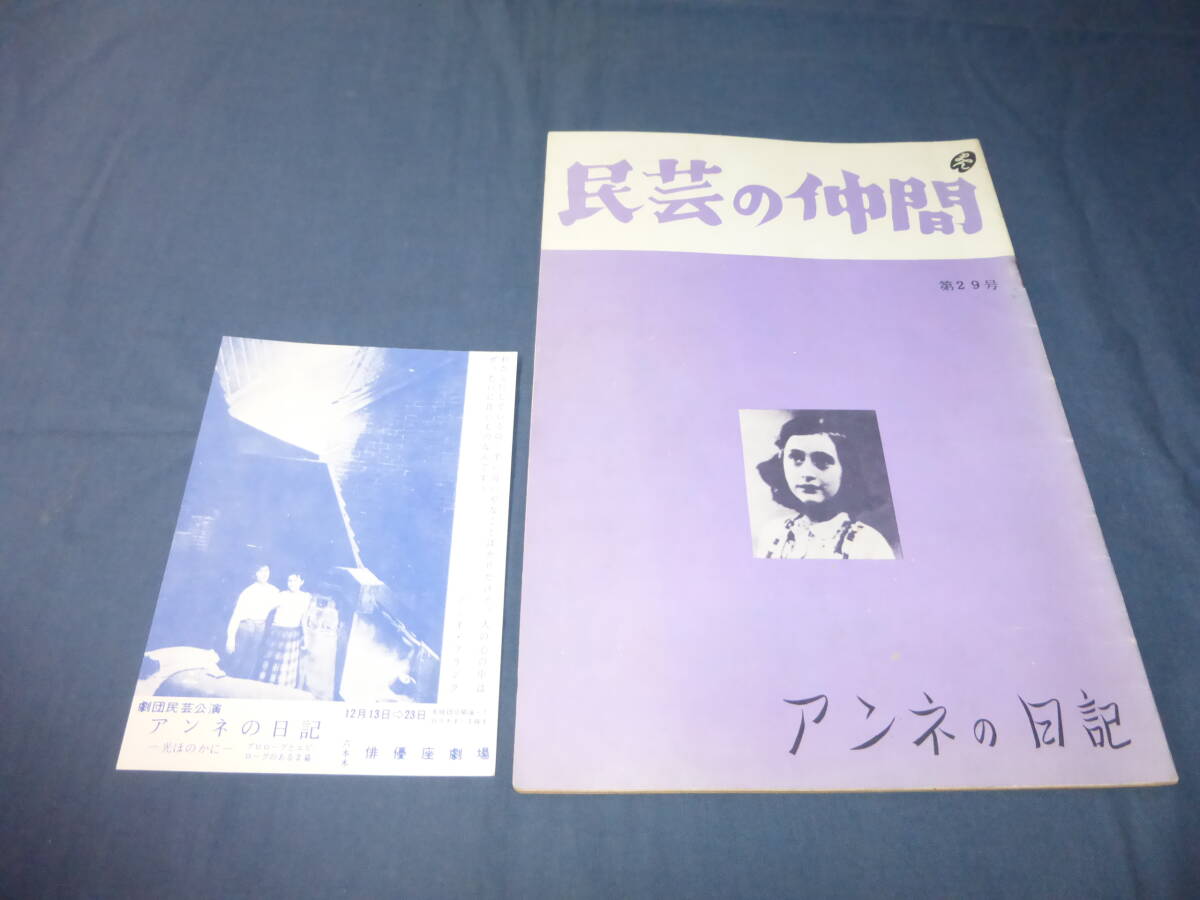 - (53)古い舞台パンフ/民芸の仲間(第29号)「アンネの日記」葉書付/1956年/北林谷栄、吉行和子、奈良岡朋子