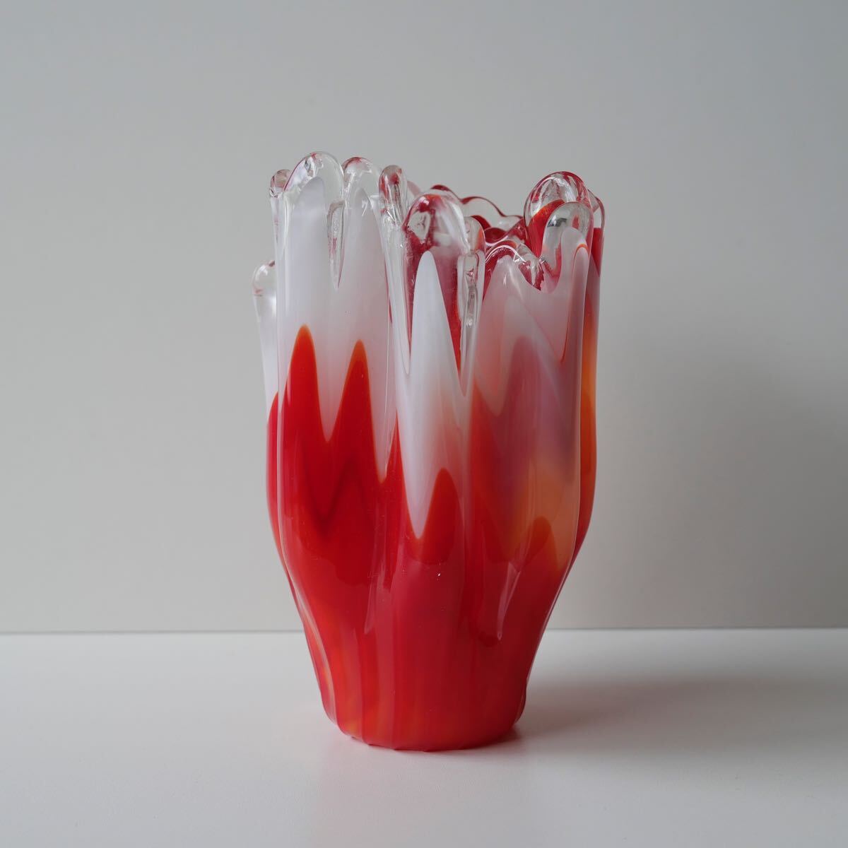 - 流線形のガラスフラワーベース 花器 インテリア ビンテージ 昭和レトロスペースエイジ古道具ディスプレイオブジェ