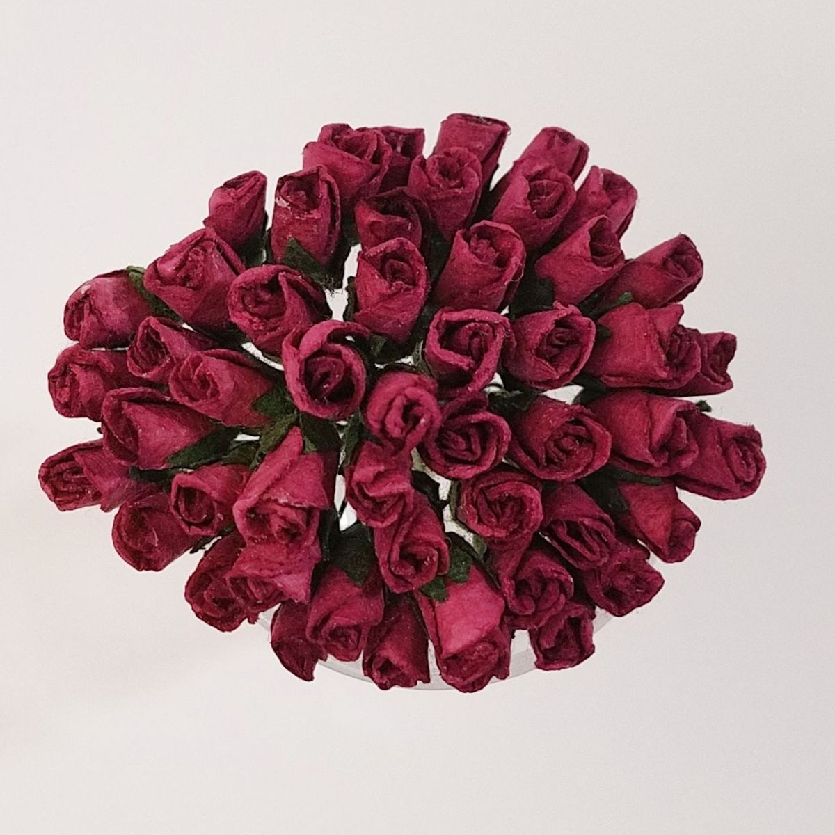 - 造花[ミニ・ペーパーフラワー バラのつぼみ(ワインレッド #104) 約7×14mmサイズ 50本] 手作り ハンドメイド アートフラワー