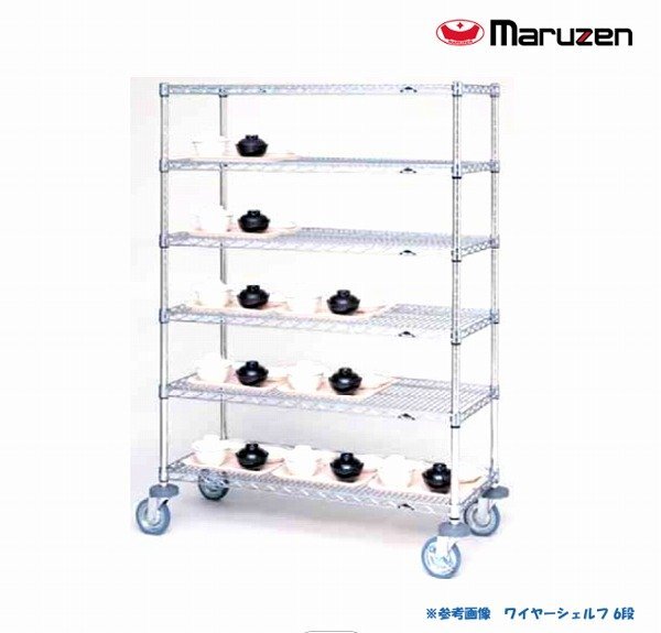 - 2021年製・移動も楽・マルゼン・自在キャスター付ワイヤーシェルフ・6段・耐荷重200㎏・中古・収納棚・配膳カート・・店舗用品・北海道
