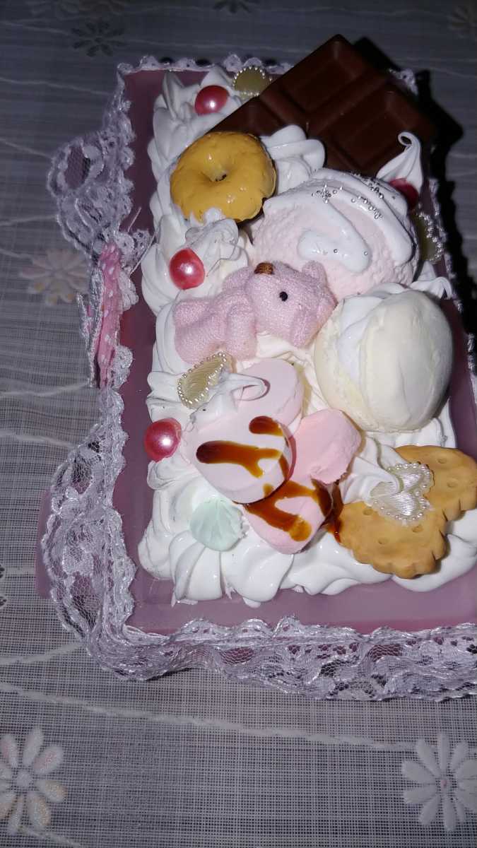 - スイーツ生クリーム一杯超デコのビンクプラスティックコスメケース