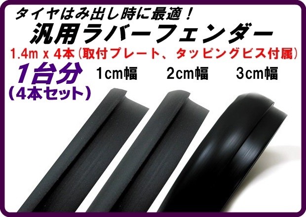 - 【1cm幅 汎用ラバーフェンダー 1台分set】高耐久フェンダーモール 10mm 10ミリ幅 取り付け金具付き 4本セット 在庫有り