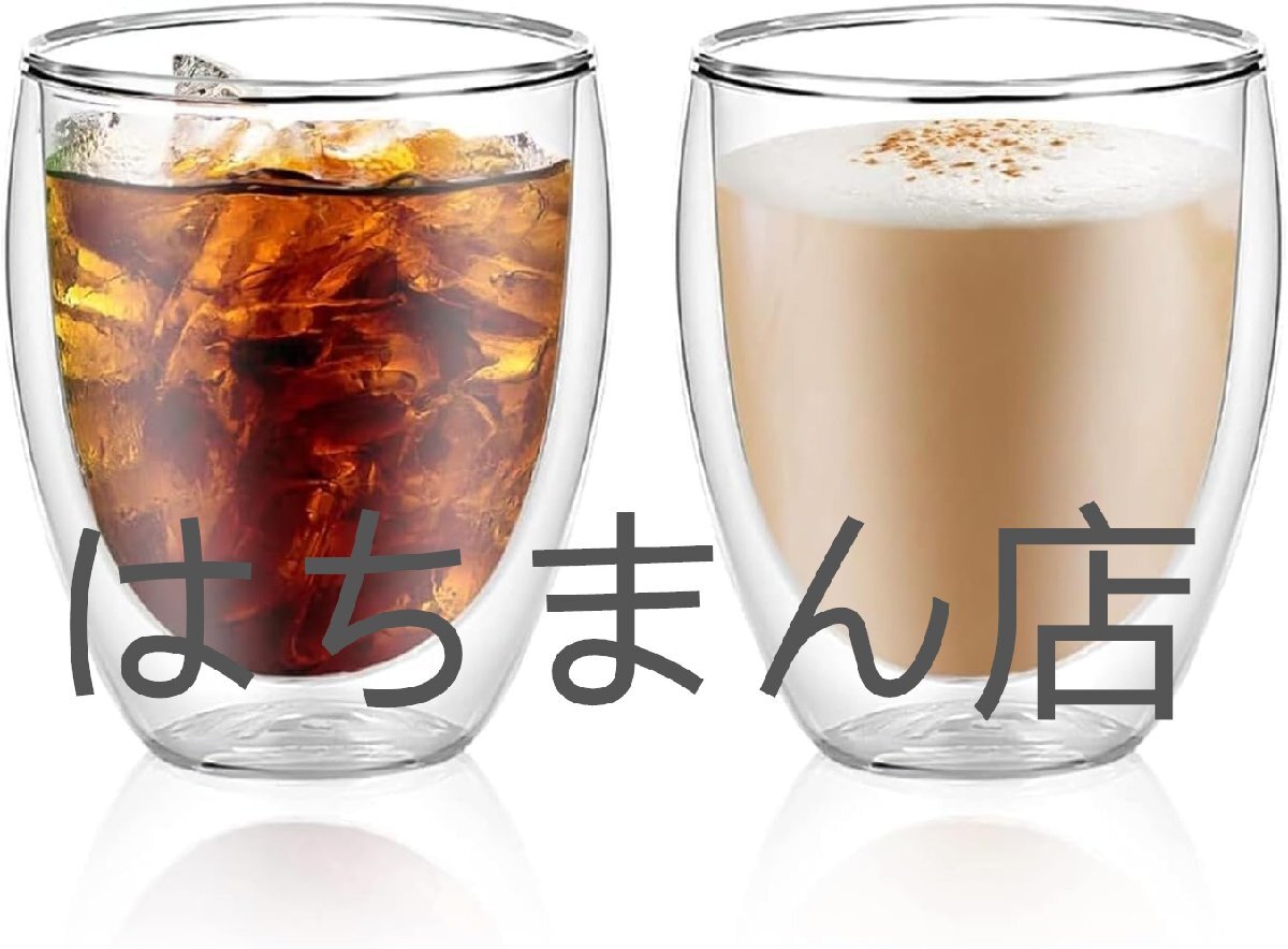 - ダブルウォール グラス 4個セット 350ml 耐熱 二重 コップ コーヒー 保冷 保温 透明 結露しない マグカップ タンブラー (250ml)