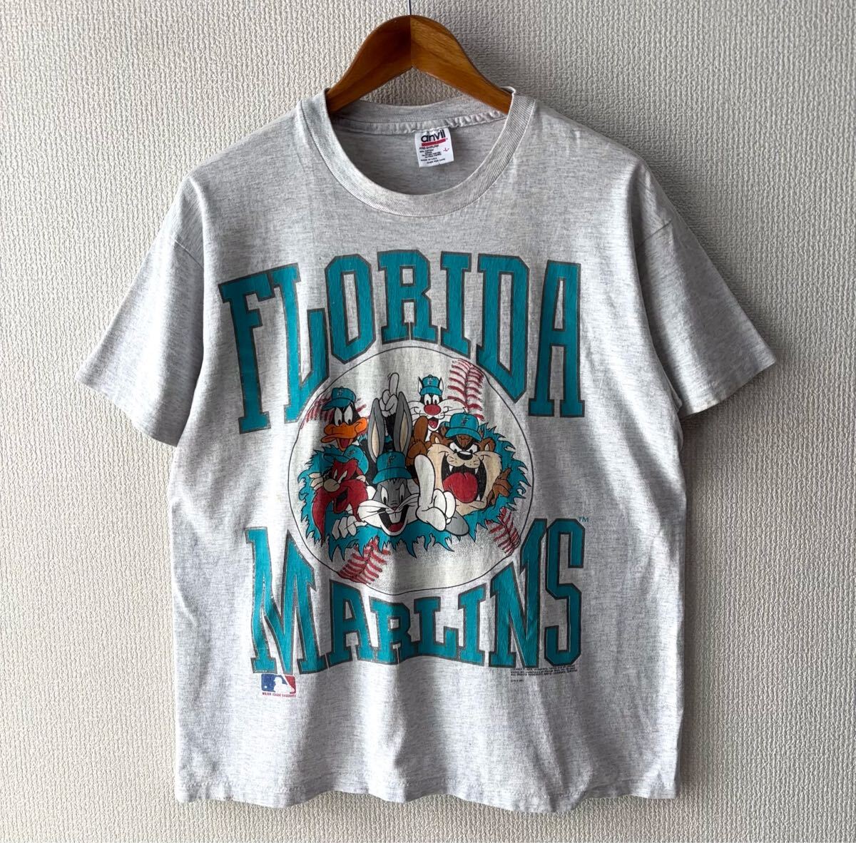 - 90s USA製 anvil ルーニーテューンズ MLB マリーンズ プリント Tシャツ L アメリカ製 半袖 アンビル