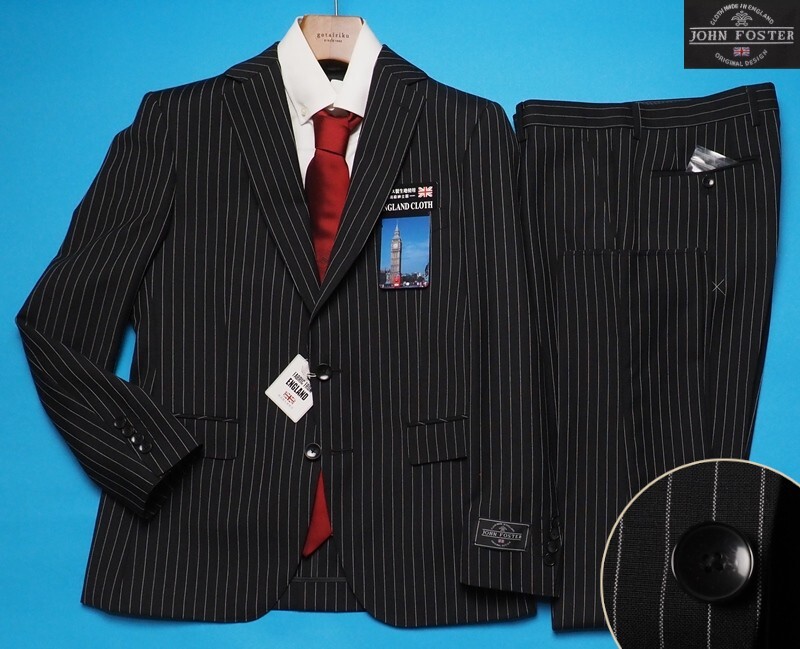 - 新品8.6万円 大手百貨店扱い 春秋『ジョンフォスター 英国製生地』 ウール100% ストライプ スーツAB7黒(A) 1500091