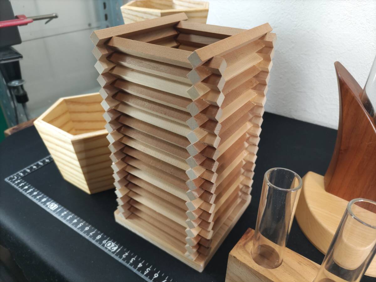 - ■送料無料!■まとめて■組木・小物入れ■一輪挿し・試験管■花器■木製■フラワーベース■6角・小物入れ■6点セット!