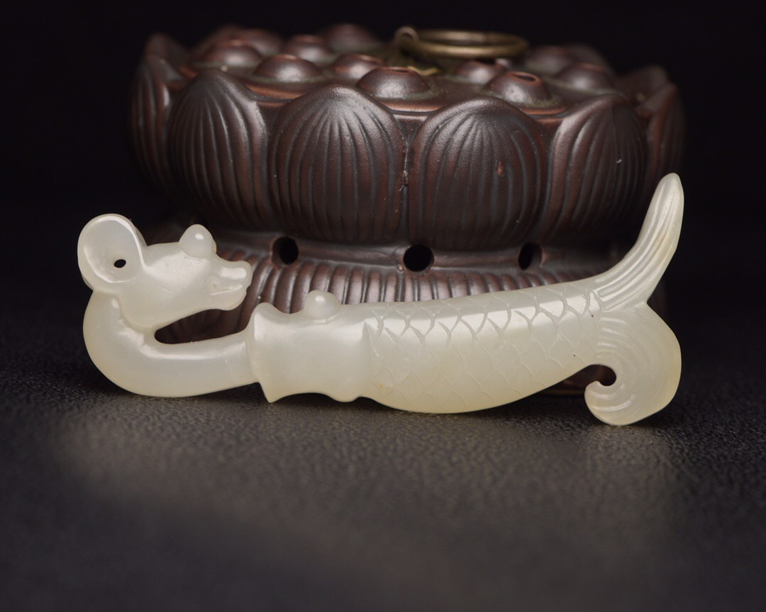 - ▽鴻▽ 和田玉製 細密彫 玉龍 置物 古賞物 中国古玩 中国古美術