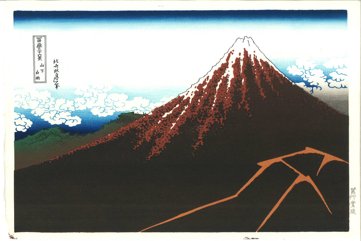 - 真作保証 葛飾北斎 木版画 富嶽三十六景 山下白雨(雷富士) 初版1831-33年(天保2-4年)頃 やはり北斎の木版画は凄い!!